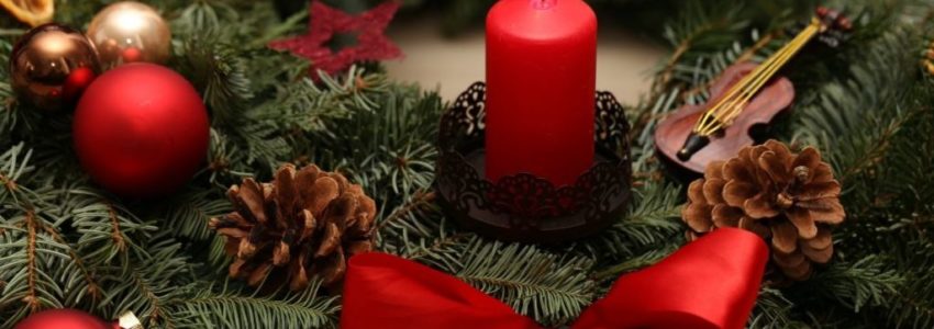 - la instalación de una corona de adviento y el encendido de velas rosas y moradas para simbolizar la esperanza de los cristianos y la naturaleza eterna de Dios